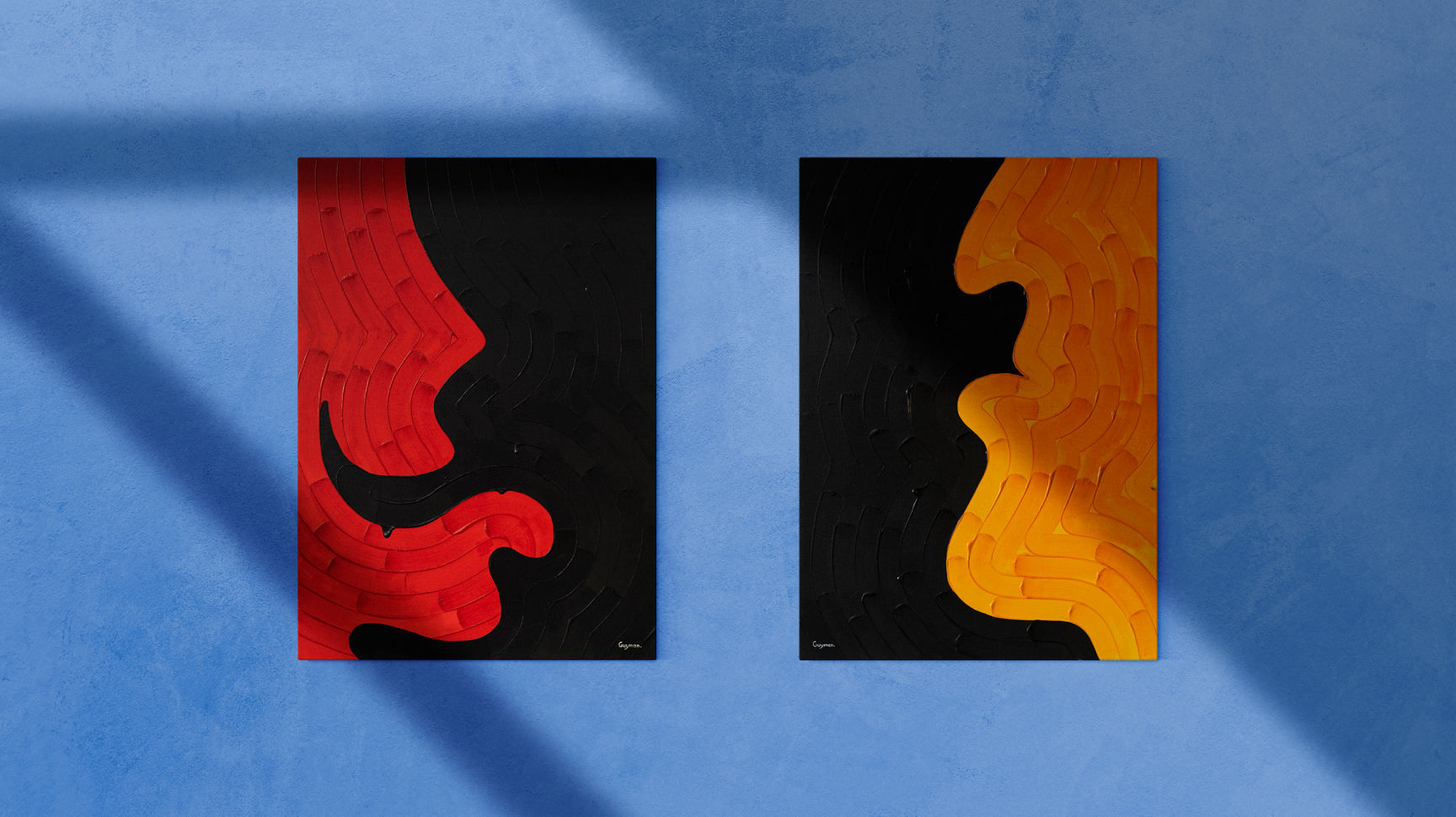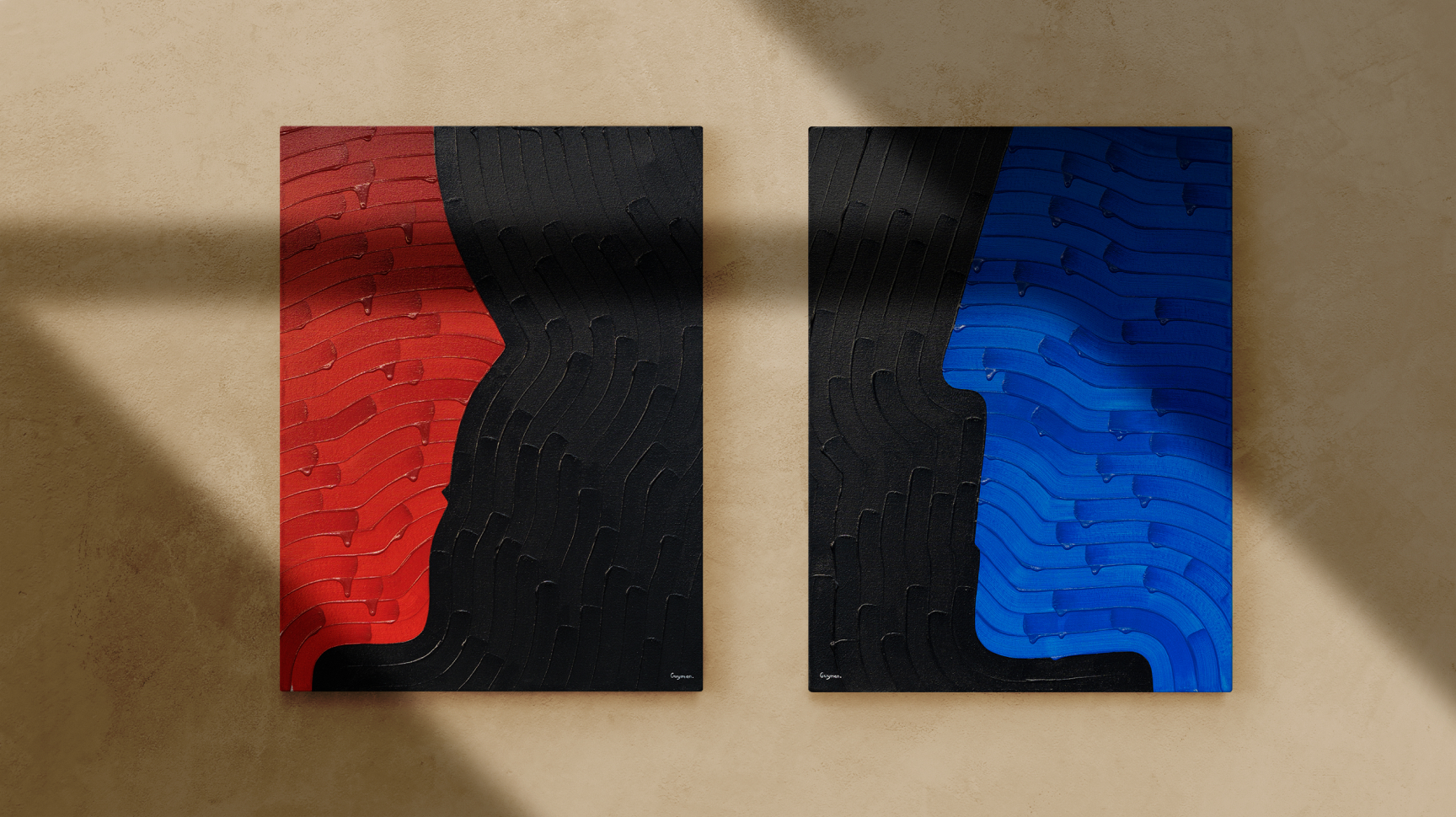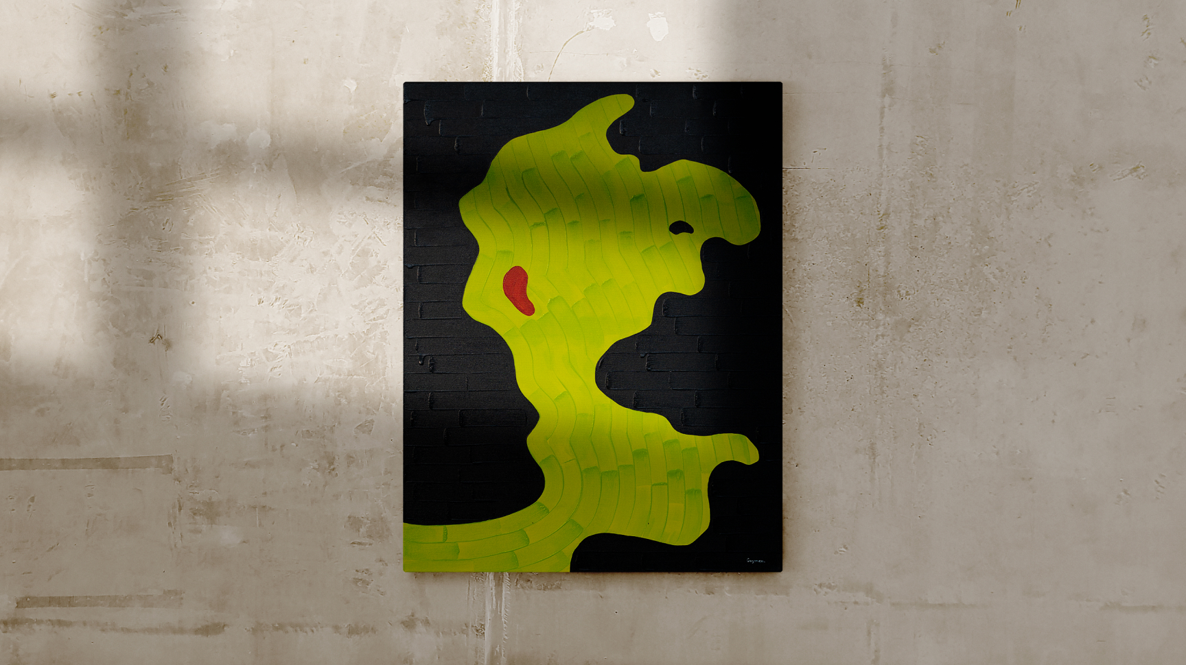 Это баланс графики и живописи. Массивные мазки широкой кистью акриловой краски, образуют рельеф холста, визуальное изображение наносится четкими и плавными линиями, создавая контраст и объем.