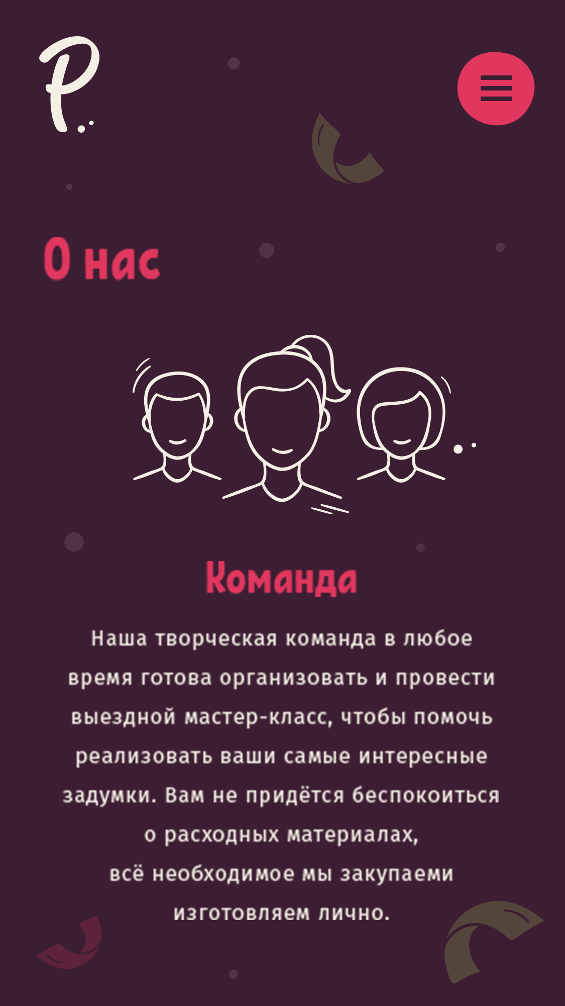 Разработать фирменный стиль и логотип для творческого агентства по выездным мастер классам. UX/UI дизайн посадочной страницы компании.